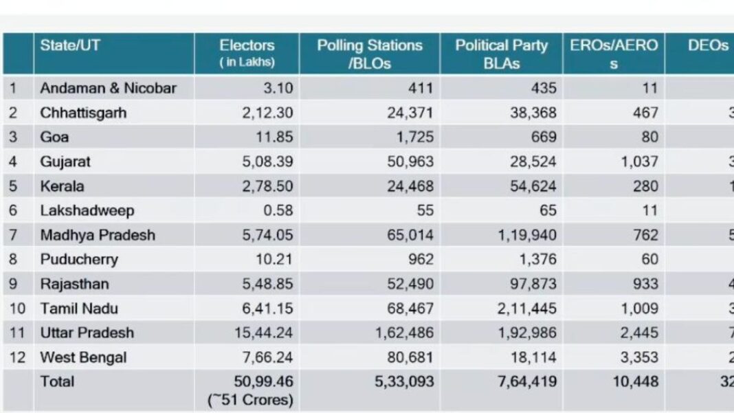 पैन-इंडिया सर: यूपी, बंगाल, केरल – 12 राज्यों, केंद्रशासित प्रदेशों की जाँच करें जहाँ मतदाता सूची में संशोधन होगा